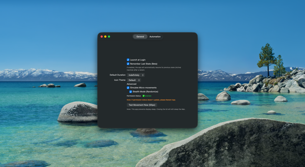 - ✅ Natural Activity Mode: Simulates gentle mouse movements to prevent idle timeouts naturally.